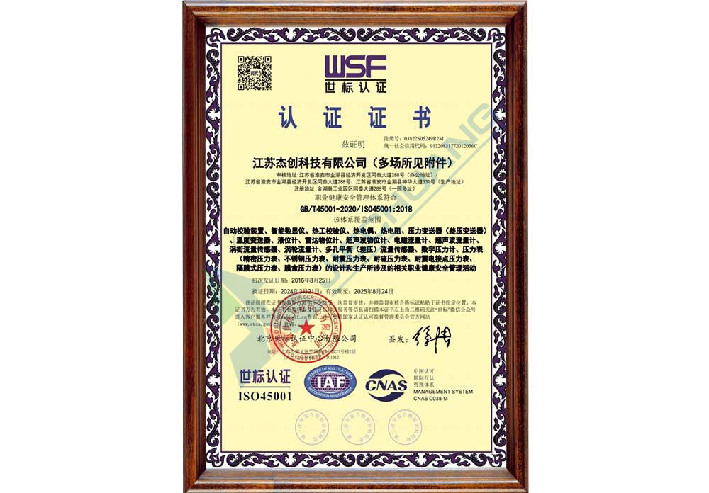 职业健康安全管理体系证书